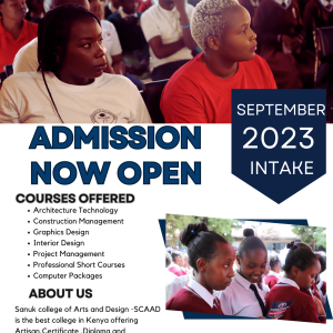 Welcome to the best  technical training Institution offering Diploma, certificate and artisan courses examined by KNEC .Sanuk College of Arts and Designs (SCAAD) seeks to breach the gap between a theoretically based and practical oriented courses.